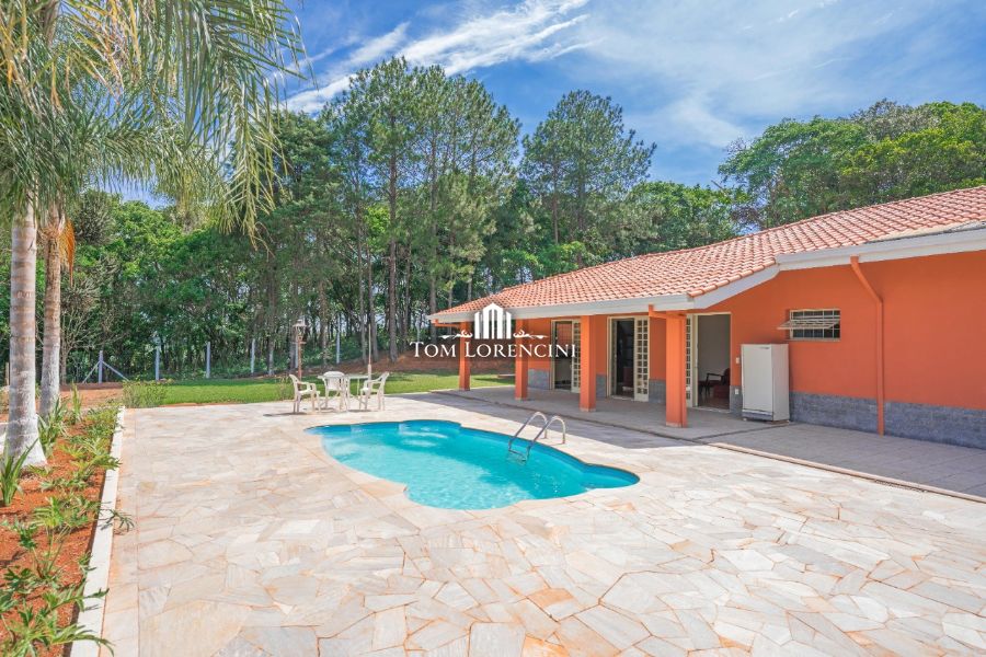 Casa avarandada, área fechada com vidros e persianas, sala grande, 4 suítes, lavabo, cozinha grande, dispensa, 1 lavanderia fechada e 1 aberta, sala de jantar, área gourmet fechada (pia, fogão a lenha e churrasqueira)